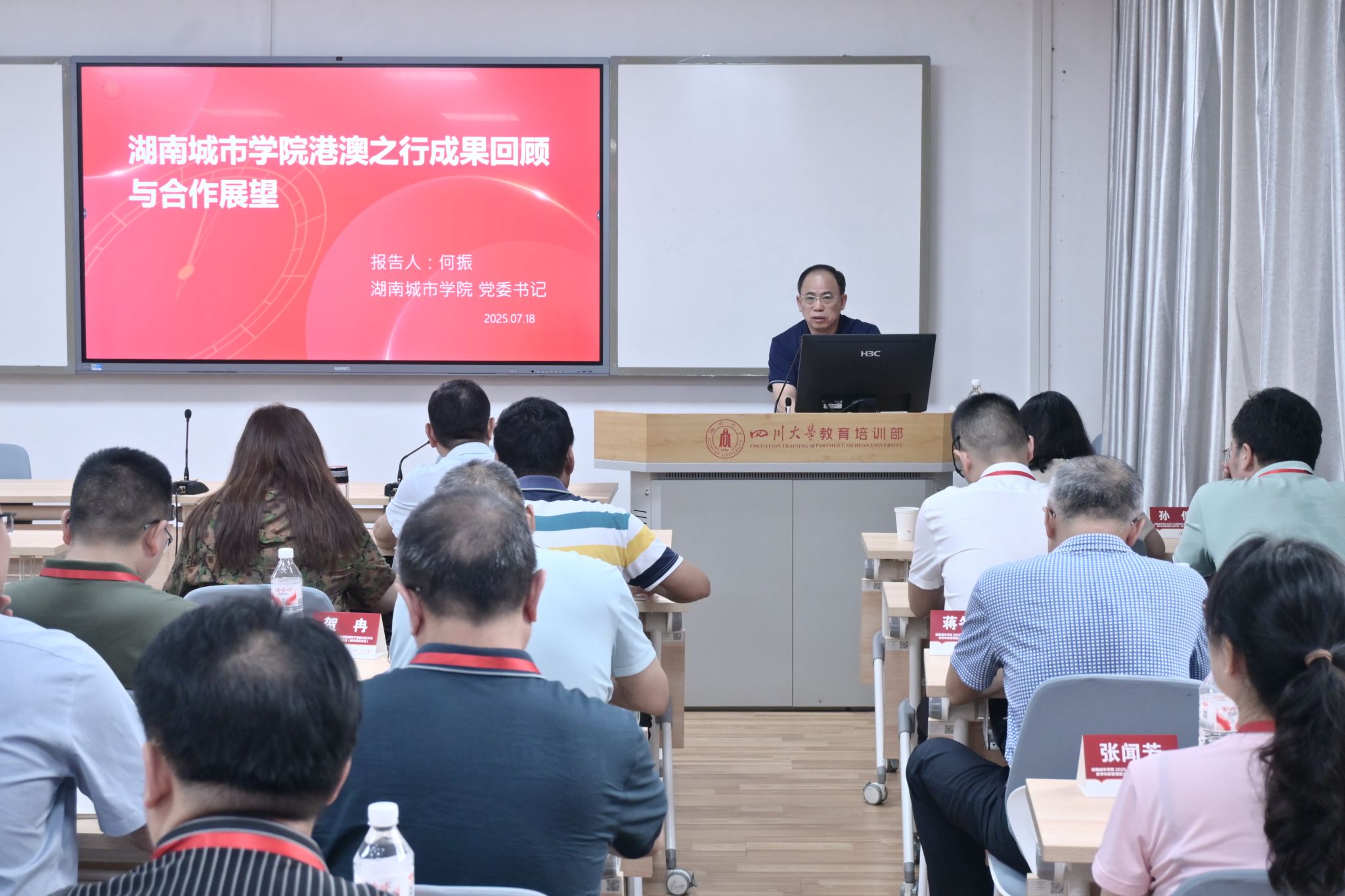本网讯为进一步强化学校领导干部的政治修养,全面提升教学科研管理能力,7月14日至19日,我校在四川大学举办2025年暑期领导干部政治能力与教学科研管理能力提升班,校领导何振、谭献良、徐姝、孙倩、吕贤军及部分职能部门负责人和二级学院院长、副院长共40余人参加培训。此次培训历时6天,采用专家讲座、现场教学、学习研讨等多元化形式,为领导干部“充电赋能”。