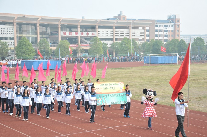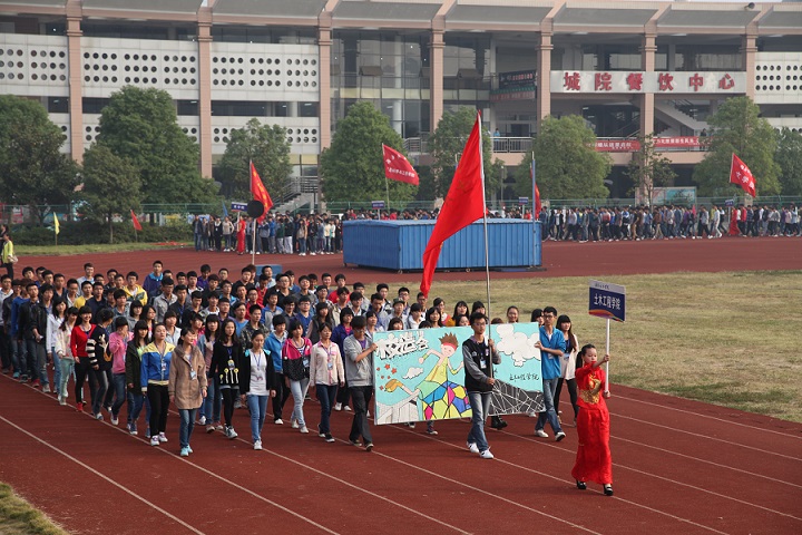 开幕式在庄严的国歌声中开始。来自各二级学院的运动员、裁判员方阵迈着整齐的步伐入场接受检阅。各代表队通过不同的队列彰显了本学院的特色。其中,市政与测绘工程别具一格,活泼的吉祥物米老鼠走在队伍的前列,运动员代表高举“点燃心中之火”的宣传板,统一着装的运动员高喊着比赛口号,尽显我校学生的青春活力。16个方阵恰似田径场上盛开的朵朵奇葩,尽显各个学院的魅力与风采,展现出我校大学生饱满的激情和无穷的创造力。