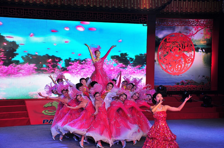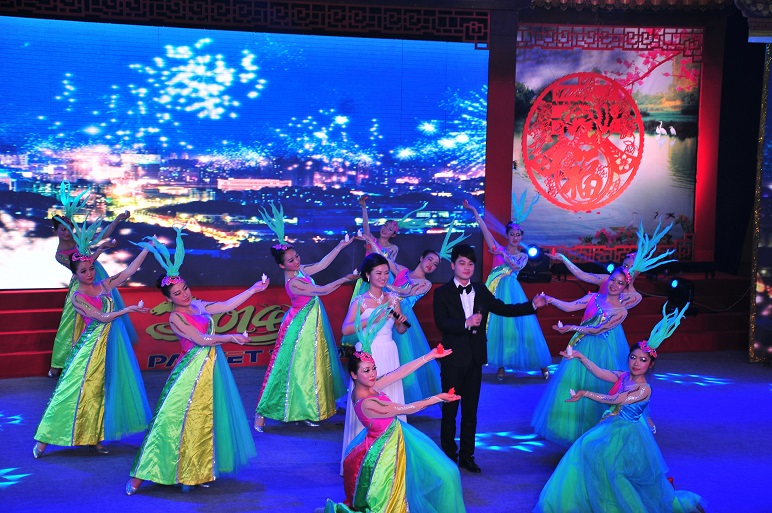 晚会以生态丽都绿色环保为主题,倡导和美、和睦、和谐精神,15个节目都带有浓郁的益阳地方文化特色。我校音乐学院胡春光老师指导编排,音乐学院、建筑与城市规划学院、体育学院等学院学生参加演出的节目《益阳号子》,用舞蹈语言生动地再现了锯木、伐竹、拉纤、洗衣等劳动生活场景,获得现场观众喝彩连连。此外他们还担任了《和和美美过大年》、《春天的芭蕾》、《全家福》、《笔力所至大功成》、《万家灯火》、《桃花丛中唱益阳》等节目的伴舞,向益阳人民展示了当代大学生的风采。城市管理学院的秦燕飞老师也在晚会上参加方言歌舞《茶蛇爬》演出。来自加纳的留学生Stanley(中文名:李小华)和Jennifer(中文名:美丽)更是与益阳电视台主持人一起合作,充当主持人、演出小品《和事佬》,为晚会增添了一道靓丽的色彩,也给电视机前的观众送去了节日的欢乐。