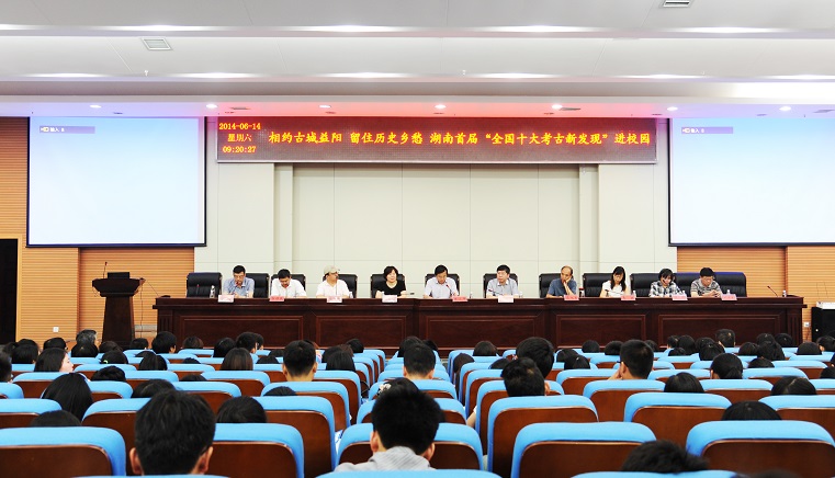 (本网讯)6月14日上午,由湖南省文物局、益阳市人民政府、中国文物报社和我校联合主办,益阳市文化广电新闻出版局、共青团众博官方网址委员会、三湘都市报、华声在线、湖南省文物考古研究所联合承办的湖南首届全国十大考古新发现进校园——“相约古城益阳留住历史乡愁” 活动在我校图书馆报告厅举行。