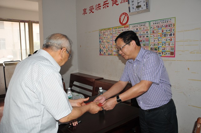 李建华一行来到慧泽园老干活动中心,先后看望了离休干部肖建湘、曹仲涛、陶伏康和一部分老同志。李建华向老同志们发放了慰问金,并叮嘱大家要注意身体,保持良好心态,为学校建设发展多提宝贵意见。