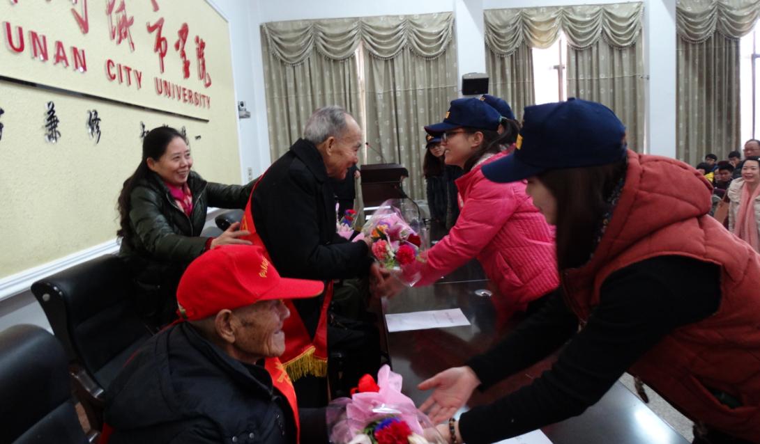 12 月13 ,应校团委、益阳老兵之家邀请,杨寅天、彭继鹏、夏腾芳、李光前、陈谷丰、蔡梦霞、陈昆生等7位参加过抗日战争的黄埔老英雄到学校视频会议室举行“我的南京,我的 1937黄埔老兵祭奠南京大屠杀死难者主题报告会。