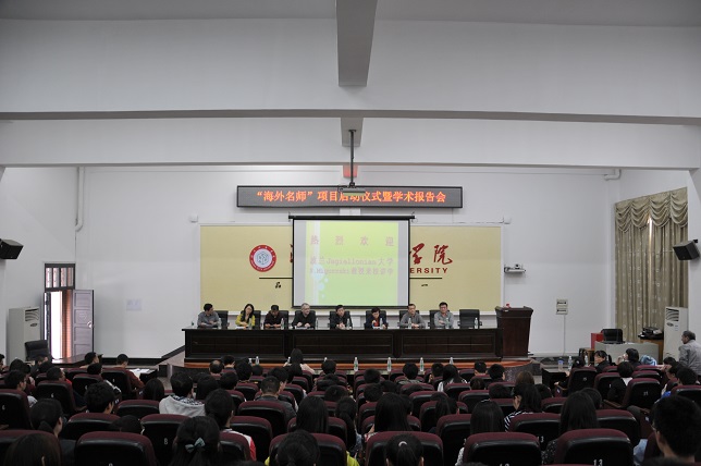 数学与计算科学学院院长肖翠娥主持项目启动仪式。国际交流处处长周桂平宣读了湖南省教育厅《关于下达2014-2015学年度湖南省“海外名师”项目计划及经费的通知》(湘教通〔2014309号)。项目负责人李云翔博士介绍了“海外名师”Stanislaw Migorski教授的基本情况。
