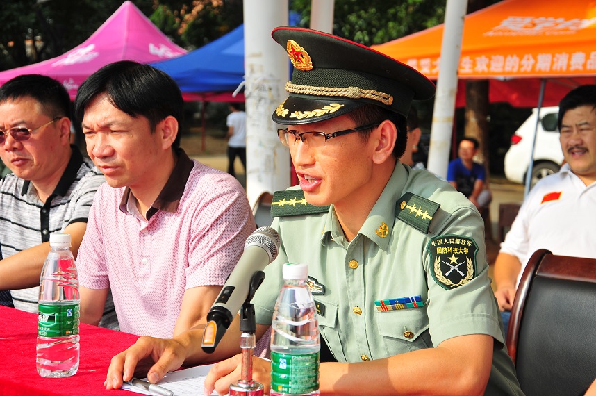 李旺军代表承训部队发表讲话,他希望全体新生坚定信念,以一个军人的身份严格要求自己,认真学习各项技能,出色完成军训任务。