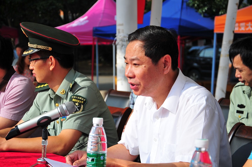 大会在庄严的升旗仪式中拉开序幕。丁亮中在会上作了军训动员报告。他说,今年是中国人民抗日战争暨世界反法西斯战争胜利70周年,军训更有特殊的意义。他勉励全体参训官兵要树立崇高的理想,实现人生价值的新飞跃;要高度重视,精心组织,全心全意服务军训工作;要端正态度,虚心学习,积极开展官教兵、兵教兵的“比、学、赶、帮、超”活动;严格施教、培养能力、重在做人。