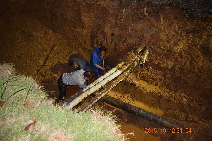 由于地下管道复杂,维修施工难度较大,为了保证新食堂的早餐供应和图书馆的正常供水,后勤处相关维修人员连夜施工,并调来了挖掘机。