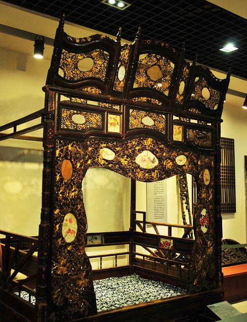 清代雕花金漆百鹤床