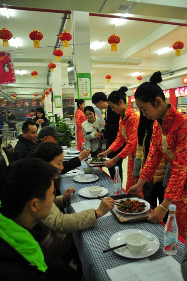 (本网讯)12 月9 日晚 ,由学校团委、后勤处主办,学生维权部、学生伙食管理委员会承办的第九届“弘城杯”厨艺大赛总决赛在第二餐饮中心二楼举办。来自各二级学院的18支队伍参加了比赛。厨师代表、教职工代表、离退休教师代表以及学生代表担任本次大赛的评委。