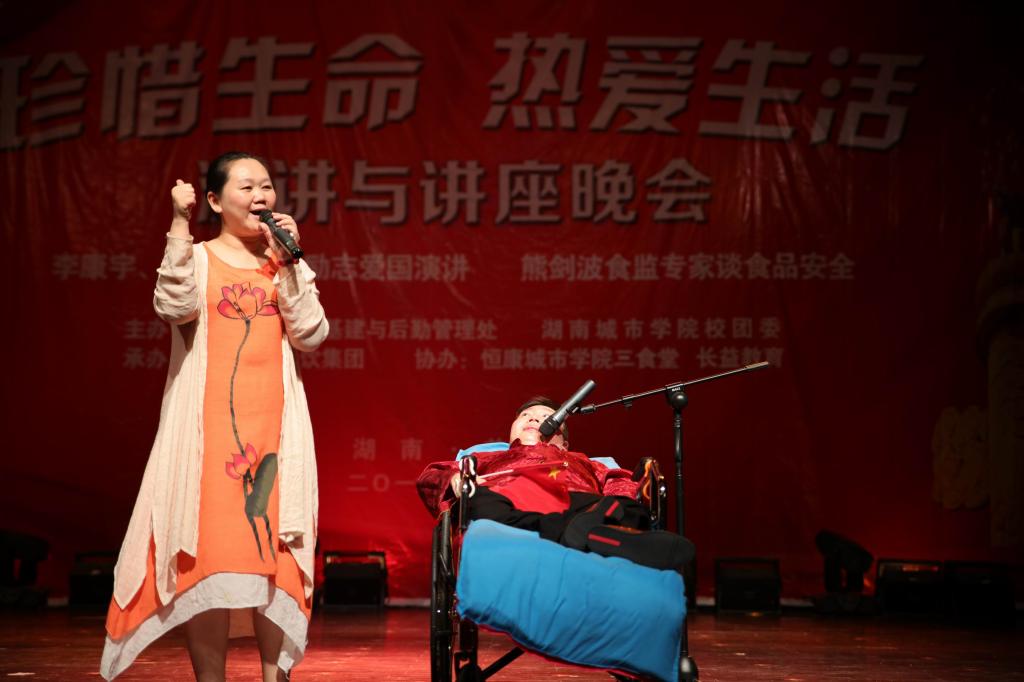 “在我最艰难、最痛苦的日子里,我曾不停的问自己,难道就这么死去。我的内心却暗暗告诉自己,一定要活着,一定要走出家门,拥抱外面美丽的世界。”李康宇简朴的话语打动了在场的观众,不少人留下了热泪。