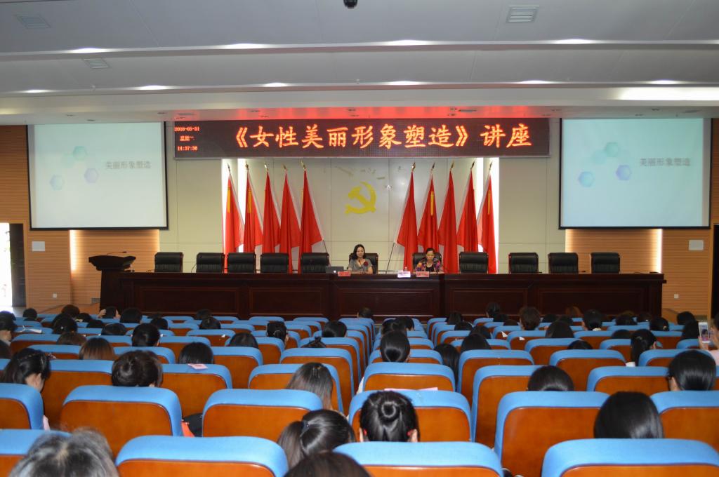 (本网讯)5月31日下午,由学校工会女工委主办的“女性美丽形象塑造”讲座在图书馆报告厅举行,特邀国家级形象礼仪培训师、湖南省色彩与化妆专业委员会副会长杨柳主讲。工会女工委委员、分工会女工委员、女职工代表、女子学校学员代表共计300多人参加了讲座。