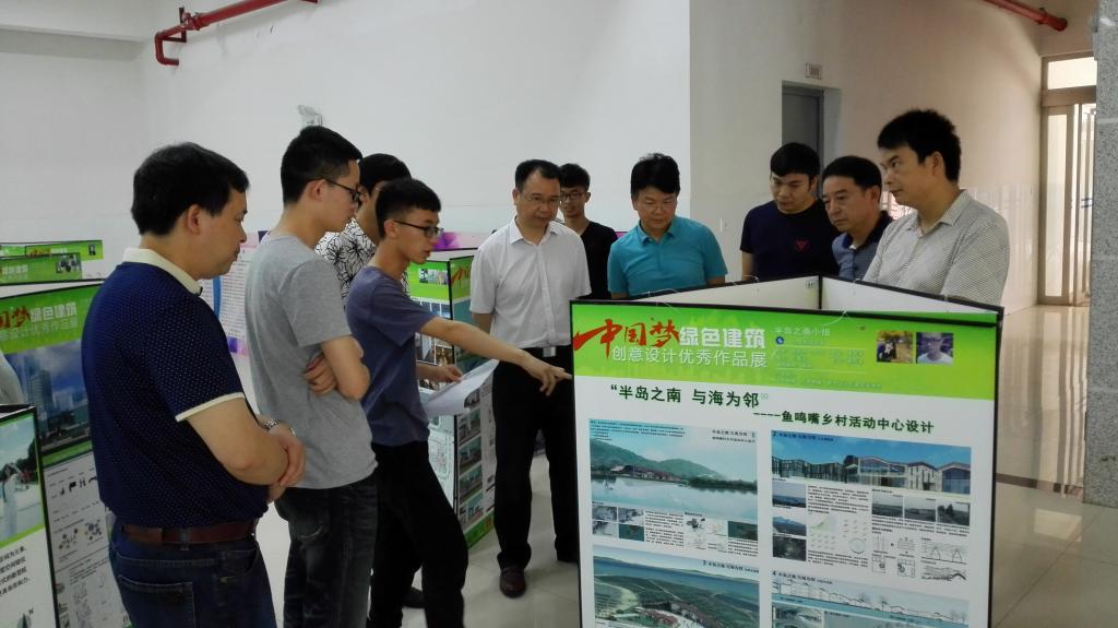 (本网讯)2016年6月13日上午,校长李建奇、副校长汤放华来到建筑与城市规划学院一楼大厅,参观了第五届中国梦绿色建筑创意设计大赛优秀作品众博官方网址站的巡展。