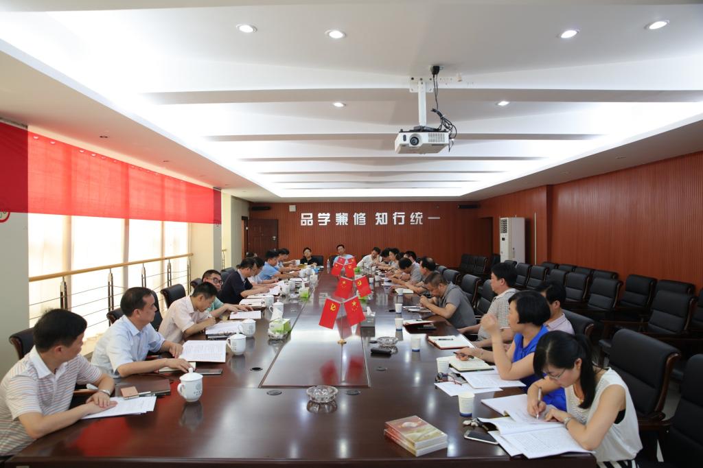 (本网讯)7月9日下午2时30分,我校党委中心组在办公楼一会议室集中学习了习近平总书记”七一”重要讲话精神和省委书记徐守盛在全省学习贯彻习近平总书记在哲学社会科学工作座谈会上重要讲话精神。会议由党委书记罗成翼主持,党委中心组成员和文科类二级学院院长、党总支书记参加了学习。
