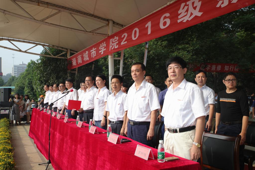 (本网讯)9月12日,我校2016级新生开学典礼在学校田径场隆重举行。全体校领导,二级学院主要负责人、党总支副书记,党政办、宣传部、学生工作部、武装部、教务处、团委、招生就业处等部门负责人以及近4000名新生参加了典礼。典礼由党委书记罗成翼主持。