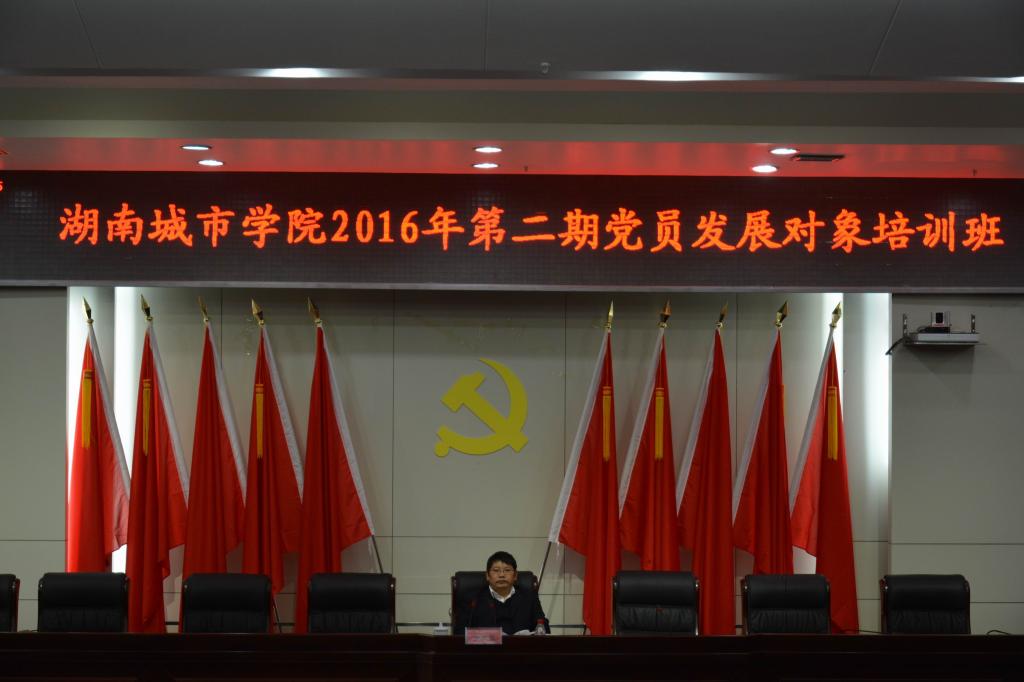 党委书记罗成翼教授出席开班仪式并做动员讲话,他勉励大家不断加强思想修养、行动自觉,坚定理想信念,端正入党动机,积极践行党的宗旨,争取早日加入到党的队伍中来。并以“坚定理想信念”为题,围绕共产党人的奋斗目标和理想追求、理想信念是共产党人的政治灵魂、并结合“四个全面”战略布局和“五大发展理念”,以及学校“十三五”发展规划,对发展对象如何坚定理想信念等方面,为大家做了全面而深入的讲解。他说,学生党员发展对象要坚定共产主义理想和中国特色社会主义信念,立足岗位争当学习的表率、全面成才的表率,带领同学们刻苦学习,练就过硬本领,锤炼高尚品质,艰苦奋斗,勇于创新,实现自己的人生价值,为建设美好城院增光添彩,在实现中国梦的生动实践中放飞青春梦想。
