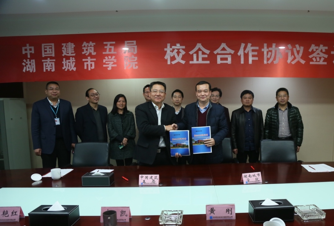我校与中国建筑第五工程局有限公司本着“优势互补、资源共享、互惠双赢、共同发展”的原则,将共同进行科研项目开发、技术改造和学术研讨;共同推动高校校外实践基地建设;共同探索校企联合培养人才的新模式和新机制;共同强化大学生专业实践能力和创新创业素质的培养与训练,实现提高人才培养质量的目标。(土木工程学院)