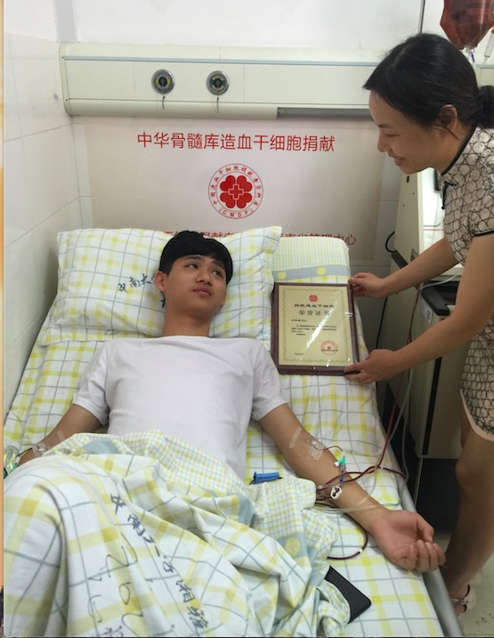 2015年,来自浏阳市的帅气小伙邓英鹏考入了众博官方网址管理学院。在学校,他第一次参与无偿献血,就填写了加入中华骨髓库志愿者的申请表。今年3月,他接到了中华骨髓库湖南省分库的电话,得知自己与一名白血病患者初配成功,他毫不犹豫就答应捐献造血干细胞。
