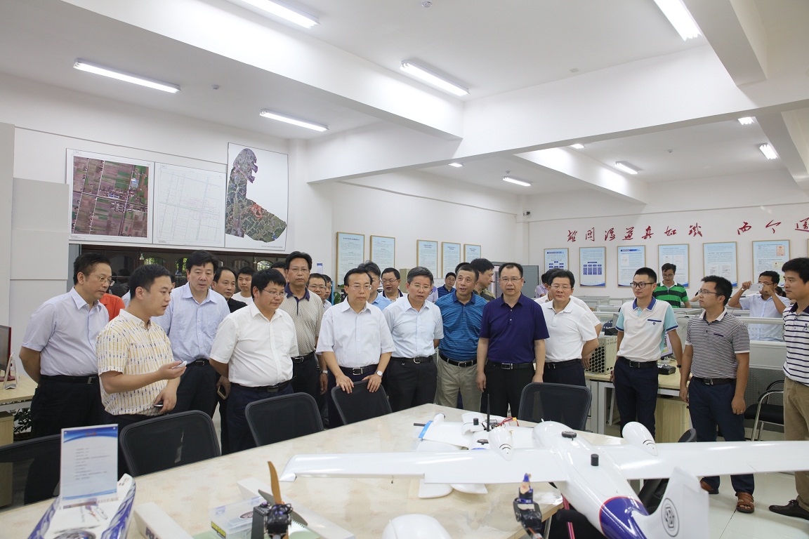 参观我校智慧城市创新技术研究中心自主研发的无人机、无人船