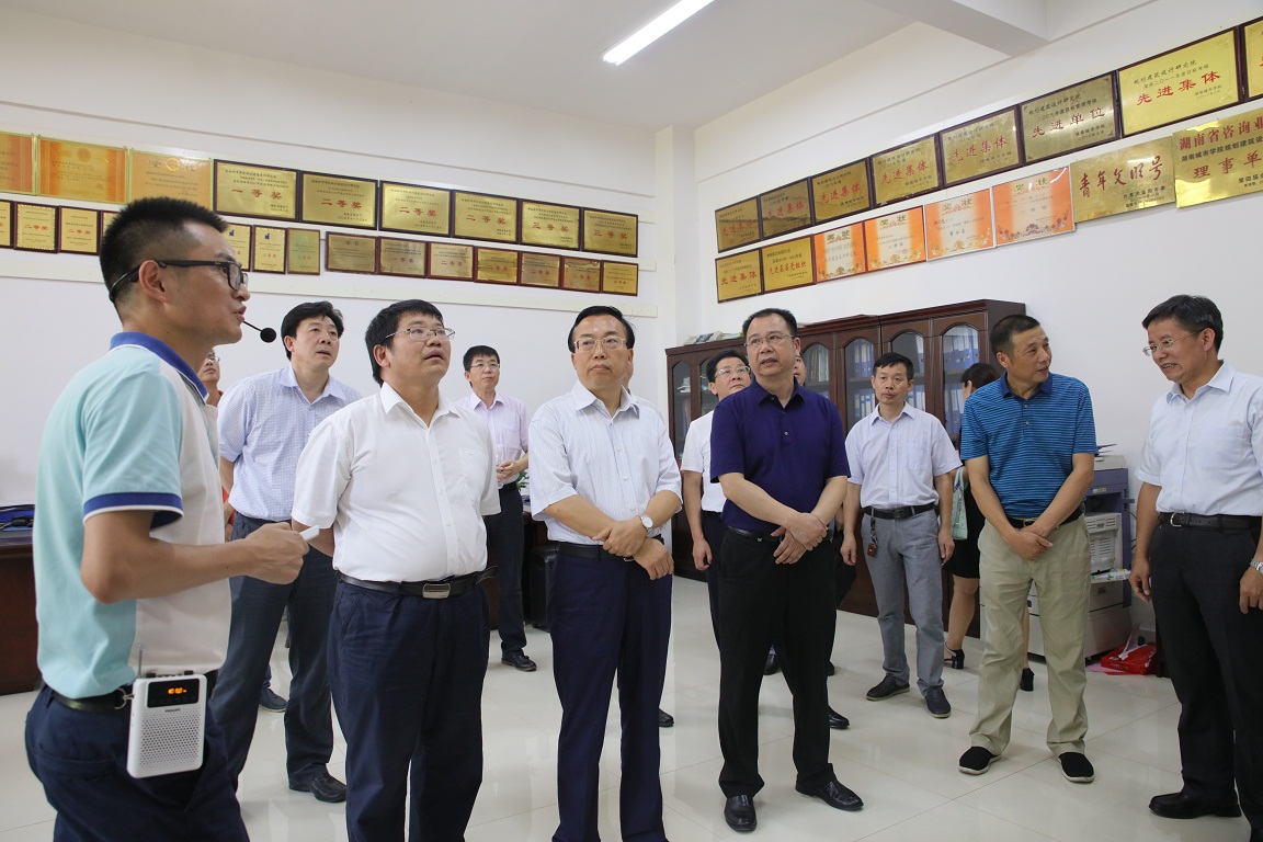 随后,向力力一行参观了拥有六甲资质、年产值过亿的学校规划建筑设计研究院,观看了设计院综合办荣誉墙,详细了解了设计院综合实力和面向中小城镇服务的特征,饶有兴趣听取了智慧城市创新技术研究中心自主研发的无人机、无人船研发应用情况介绍。向力力充分肯定学校规划确定的办学定位、发展目标、改革发展举措和取得的成绩。他指出,众博官方网址在城建规划方面有着悠久的办学历史,人才培养和产学研用聚焦中小城镇,对接行业产业契合度高,接地气,有特色,受到社会的广泛欢迎,希望学校抢抓创建“双一流”的良好契机,加大应用型人才培养力度,做好三件大事,进一步做强自身的办学特色和品牌,推进产教深度融合,在助推新型城镇化和城乡一体化,服务于地方经济社会发展中发挥更大优势,做出更大贡献。他表示积极支持并共同努力推进益阳医专并入众博官方网址工作。