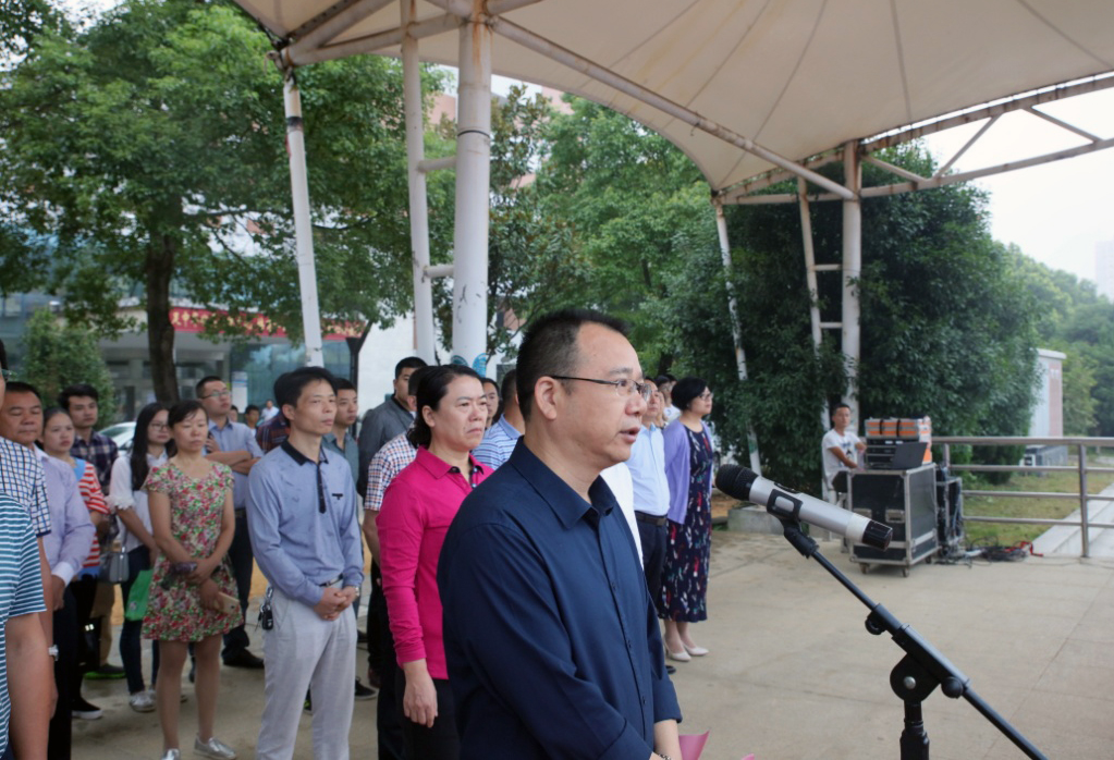 校长李建奇发表讲话。他指出,在党的十九大即将召开之际,学校举行升国旗仪式,弘扬伟大的爱国主义精神,意义重大。我校自开展“三风三力”改革以来,在教风和学风建设上已取得了阶段性成果,但仍然存在四级通过率较低、考研率较同类院校明显偏低等不足。他给所有学子提出了三点希望:一是秉持赤子情怀,爱党爱国爱校,承担起新时期的历史使命;二是投身创新创业,求真求实求新,成为助推时代发展的弄潮儿;三是保持昂扬风貌,敢想敢做敢拼,做引领社会风尚的青春榜样。他强调,当前学校正致力于三件大事:确保高水平通过本科教学审核评估,力争专业硕士点突破和尽最大努力促进医学类学科并入我校,希望同学们勤奋学习,全面成长,以优良学风向党的十九大献礼!