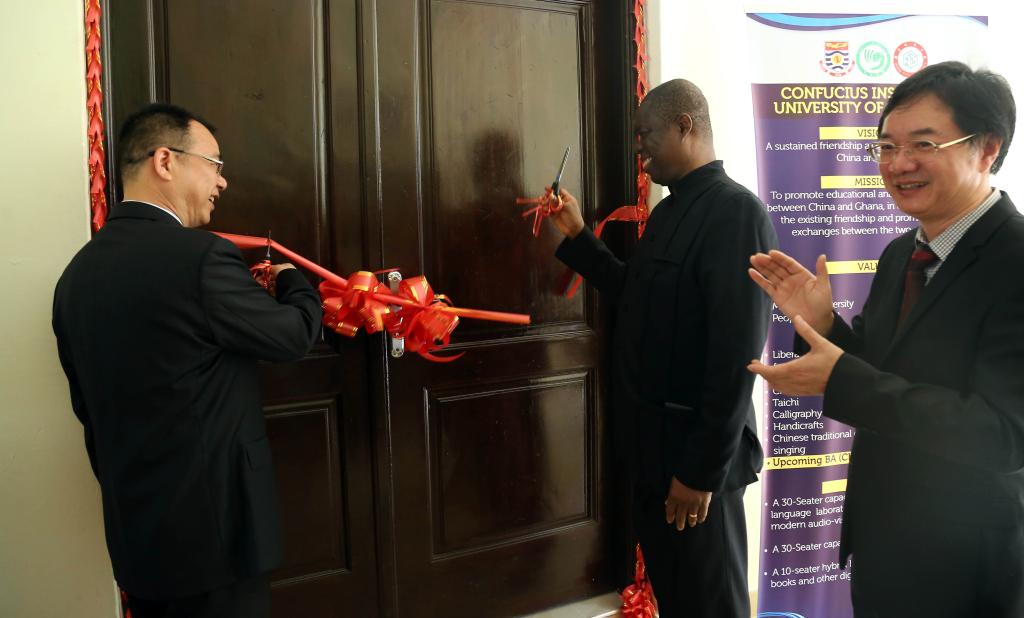 6月7日至15日,我校代表团先后参加了加纳海岸角大学孔子学院汉语语言中心剪彩仪式、海岸角大学孔子学院第三届理事会会议、访问了英国哈德斯菲尔德大学和密德萨斯大学。