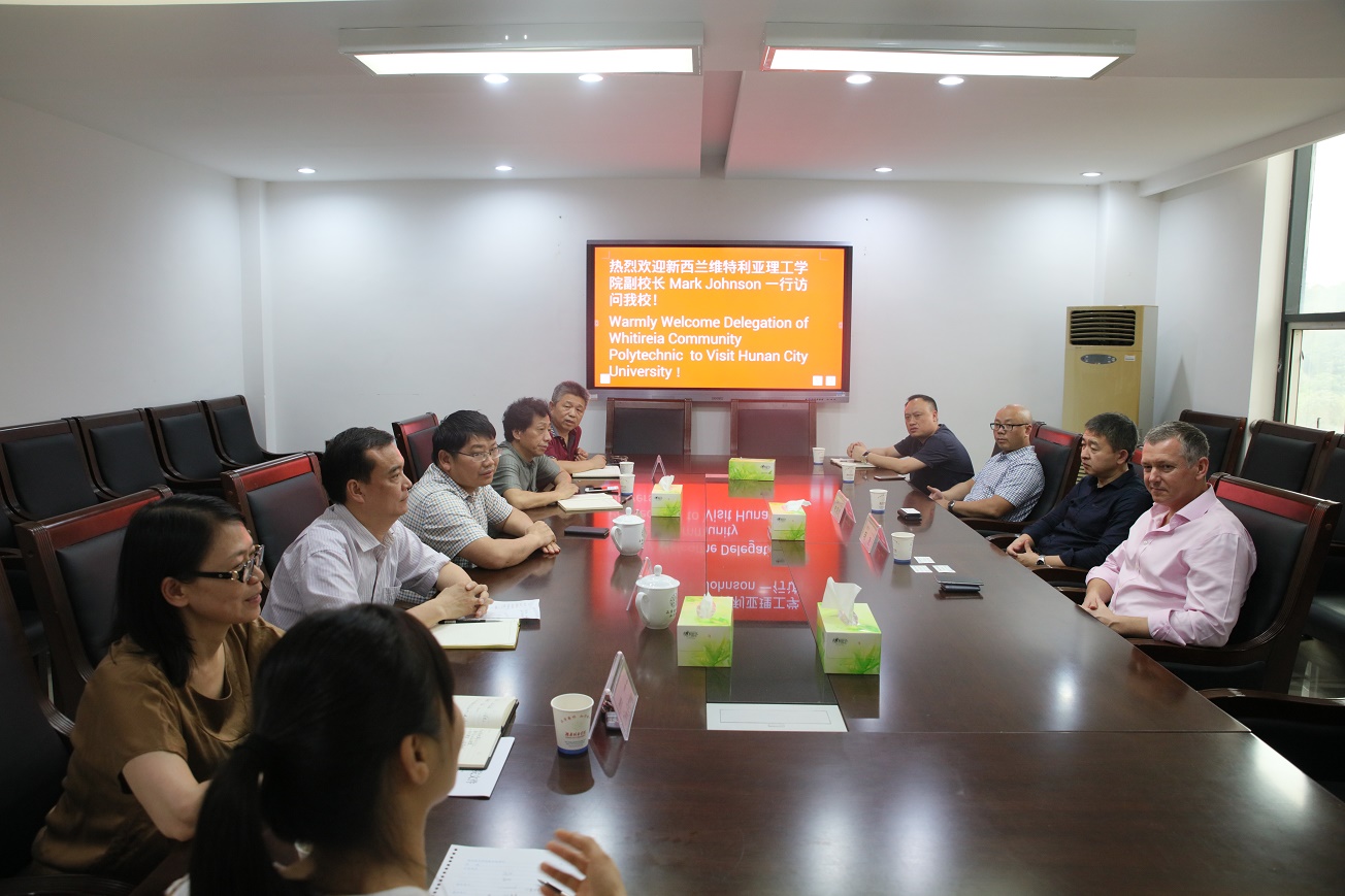 (本网讯)6月23日,新西兰维特利亚理工学院副校长Mark Johnson、国际项目部经理Brian一行访问我校。党委书记罗成翼、副校长雷存喜、国际合作与交流处和艺术学院相关人员接待了代表团一行,并召开了项目交流座谈会。会议由雷存喜主持。