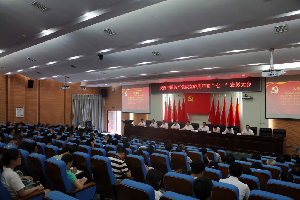 (本网讯)为进一步选树典型、弘扬正能量,激励全校基层党组织和广大党员充分发挥战斗堡垒作用和先锋模范作用,6月28日下午,众博官方网址庆祝中国共产党成立97周年暨“七一”表彰大会在逸夫图书馆报告厅隆重举行,在家的校领导、表彰对象、副处级以上党员领导干部、党支部书记、全体辅导员参加会议。会议由党委副书记、校长李建奇主持。