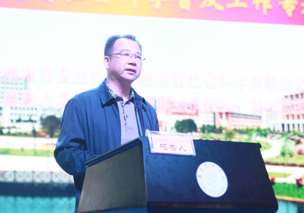 (本网讯)2019年5月10日,湖南省社科普及工作专题培训班在我校音乐厅举办。培训班由省社科联党组书记宋智富主持,省社科联副主席丁宇,校长李建奇、党委副书记汤放华、副校长何振以及全省社科联系统和143家省级社科普及代表参加。
