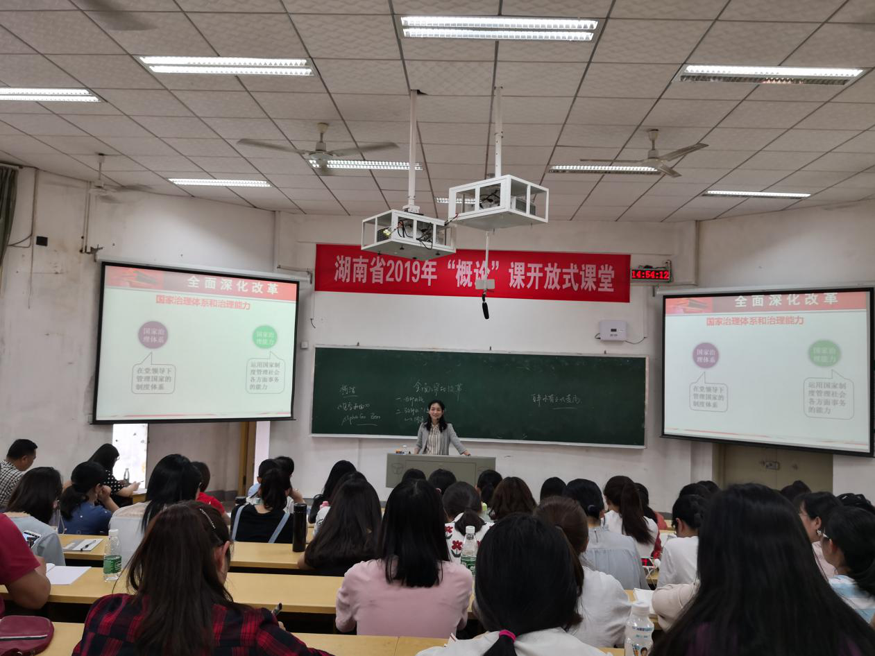 本网讯2019年5月29日下午,由湖南省教育厅、湖南省教育工委联合组织的2019年度全省普通高校思想政治理论课之《毛泽东思想和中国特色社会主义理论体系概论》开放式课堂第四讲在湖南农业大学如期开讲。