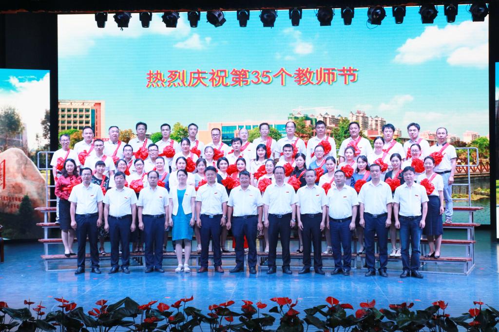 (本网讯)2019年9月7日上午,在第35个教师节到来之际,我校在学校音乐厅召开庆祝第35个教师节表彰大会。全体校领导,各职能部门、二级学院负责人及教师代表400余人参加会议。党委书记罗成翼在会上发表讲话。会议由校长李建奇主持。