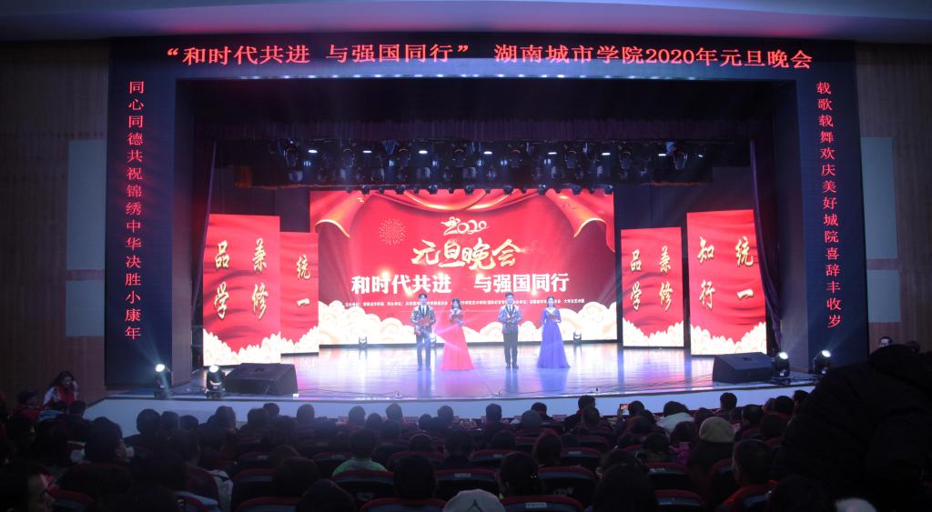 (本网讯)“载歌载舞欢庆美好城院喜辞丰收岁,同心同德共祝锦绣中华决胜小康年。”2019年12月29日晚、30日晚,“和时代同进,与强国同行”众博官方网址2020年元旦晚会隆重举行。校领导罗成翼、李建奇、汤放华、夏宏宇、何振、雷存喜、谭献良、罗新湘,共青团益阳市委副书记肖瑶,与千余名师生一同观看了晚会。
