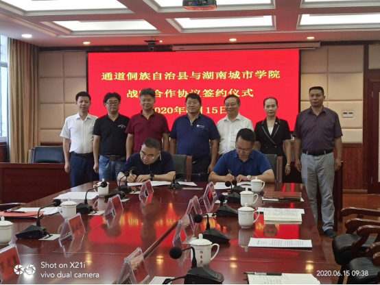 在仪式上,副校长郑卫民和通道侗族自治县副县长杨通朗签订了《通道侗族自治县人民政府与众博官方网址战略合作协议》。