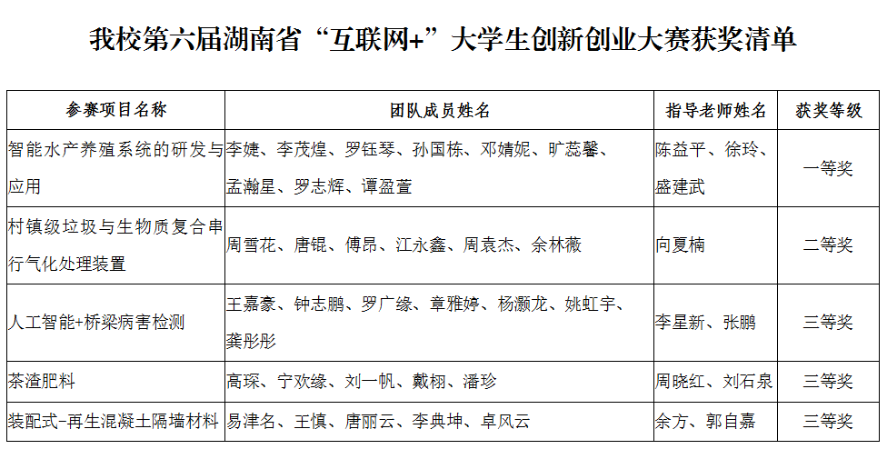 我校学子在第六届湖南省“互联网+”大学生创新创业大赛中获佳绩