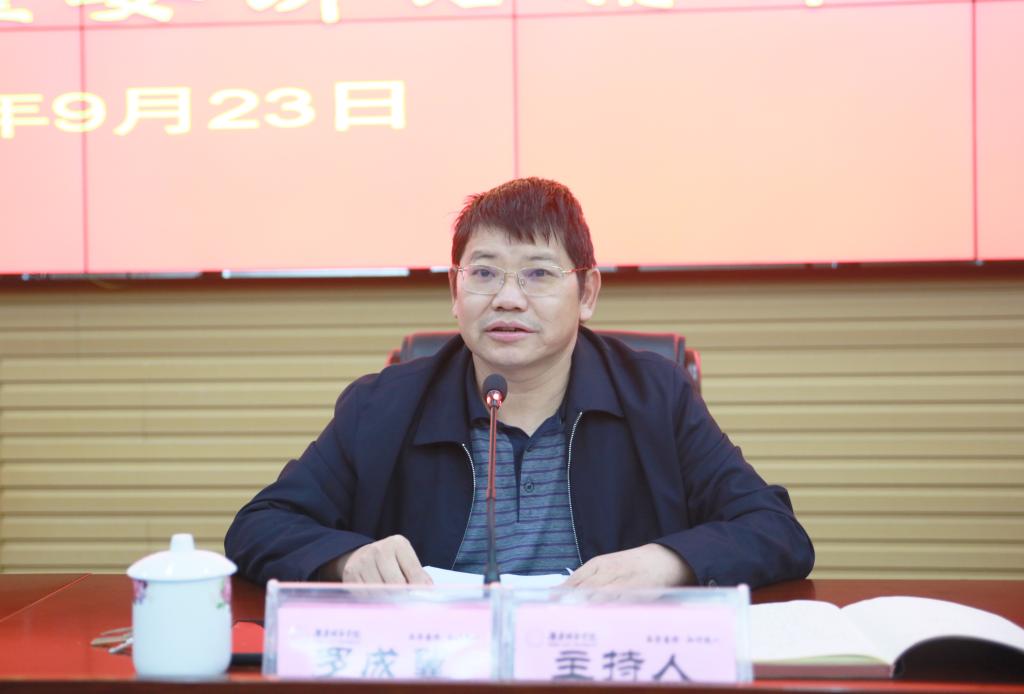 (本网讯)2020年9月23日,学校召开党委理论学习中心组(扩大)第八次集体学习,专题传达学习习近平总书记在湖南考察调研时的重要讲话精神和省委常委会扩大会议精神,全面部署贯彻落实工作,为奋力谱写新时代中国特色社会主义湖南新篇章贡献城院力量。校长李建奇领学了《习近平在湖南考察时强调:在推动高质量发展上闯出新路子 谱写新时代中国特色社会主义湖南新篇章》《湖南省委常委会扩大会议传达学习贯彻习近平总书记在湖南考察时的重要讲话精神》,党委副书记汤放华领学了《习近平:在基层代表座谈会上的讲话》。副处级(含)以上干部、学生辅导员、马克思主义学院全体教师参加会议。党委书记罗成翼主持会议并作重要讲话。