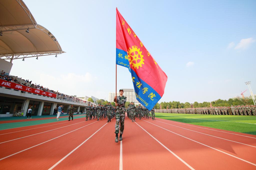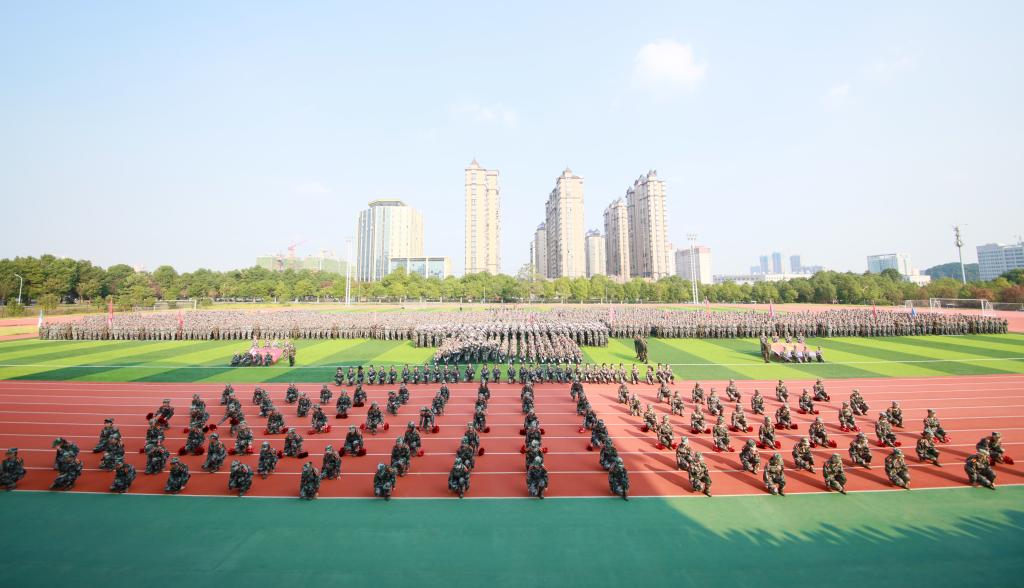 与往年不同的是,今年各个学院都有别样的汇演项目,啦啦操、擒拿拳、匕首操、手语舞等。其中来自土木工程学院的军体拳方阵整齐划一,动作熟练;他们出拳势不可当,踢腿凌厉有力;他们斗志昂扬,威震四方。信息与电子工程学院《战术·枪操》表演方阵登场便引来阵阵掌声,他们手持步枪,为大家带来特种作战表演,极具视觉冲击,让大家震撼不已。