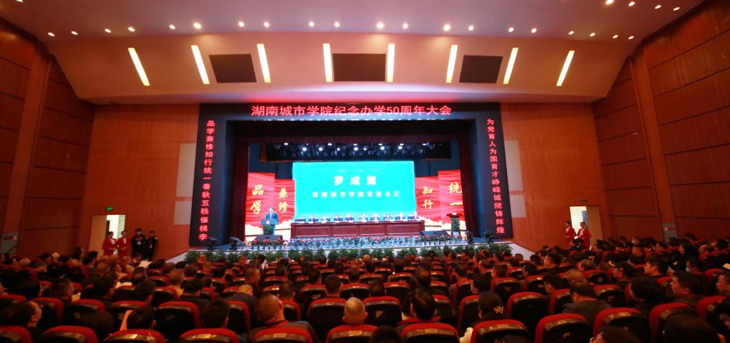 学校党委书记罗成翼致辞。他深情回顾了学校50年办学历程。合并前的两校艰苦创业、迎难而上,为学校发展积淀了厚实根基。学校初创者和历届领导者们白手起家,迎难而上,艰苦创业,坚守师范定位,培养了一大批名校长、名教师,为地方基础教育做出了重大贡献。突出城建特色,依托行业办学,对接中小城镇,为全省市县培养了大批规划建设人才,被国家教委确定为全国示范性高工专重点建设学校。新组建的城院抢抓机遇、融合奋进,为学校发展开启崭新征程。本世纪初,顺应高等教育体制改革大潮,众博官方网址应运而生。两校合并伊始,快速推进深度融合。更新教育观念,转变教育模式,顺利实现从专科到本科的转型。2012年,第二次党代会明确了“三步走”发展战略,不断完善本科教育教学体系,人才培养质量不断提高,顺利通过了教育部本科教学合格评估,推进新校区二期工程建设,完成了两校区合一,办学质量与办学效益大幅提升。新时代的城院破立并举,改革创新,稳中快进实现了跨越式发展。2016年第三次党代会以后,学校顺应教育领域综合改革的时代潮流,自主全面系统地推进整体性重塑,以大改革推进了快发展。开展“三个发展”大讨论,制定“一二三五”发展战略;目标导向分类大发展,做强城建类学科、做大信息制造类学科、提质管理服务类学科、夯实基础类学科;破立结合推进大改革,一是破分而散,立精而集、专而能的机构调整与编制改革。将16个二级学院调整为12个。二是破身份限制,立业绩导向和核心指标导向的绩效分配与目标管理考核改革,激发干事创业活力。三是破守摊平庸,立能上能下,41名处级干部主动退出领导岗位,一批80后博士教授走上重要中层岗位。四是破封闭僵化,立校企(地)合作、产教融合的应用型人才培养模式改革,构建“1234”应用型人才培养体系。五是破粗而松,立细而实、紧而准的精细管理改革,开源节流创造近2亿效益。六是破传统滞后,立应用型、现代型制度体系的大学制度改革,推进治理体系和治理能力现代化。改革创新取得大成效。4年多来,新建运动场、和学生公寓,校园道路提质、美化亮化、教学楼栋改造等基本建设,职工待遇和幸福指数显著提高,获批“湖南省新增硕士学位授予单位立项建设单位”;高水平通过了教育部本科教学工作审核评估;跻身湖南省“高水平应用特色学院”行列;2020年,列入湖南省本科第一批次招生,实现了几代城院人的梦想。