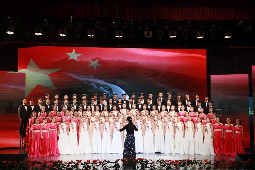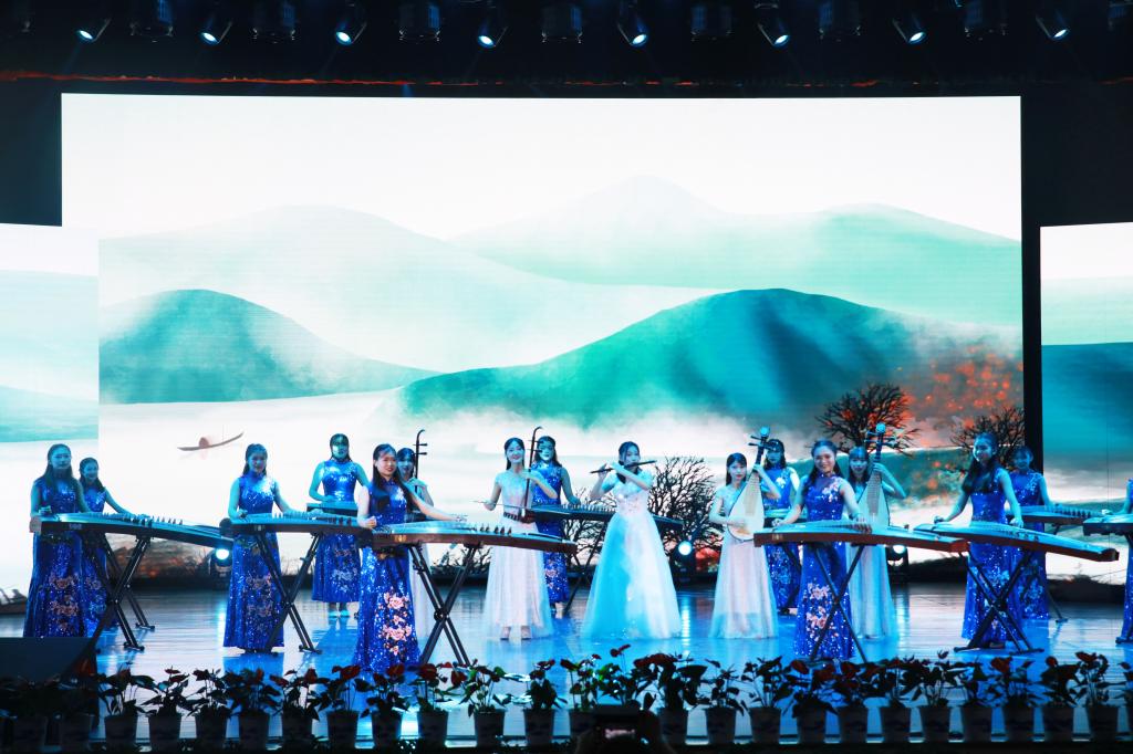 在“欢庆”篇章中,艺术学院学子为观众献上民乐合奏《欢庆校园》和原创舞蹈《花鼓情·薪火赓续》。器乐演奏热烈明快,舞蹈演绎优美动人,令在场观众目不转睛。在“奋斗”篇章中,城院教师代表同艺术学院学子携手华丽出演的钢琴八手联弹、舞蹈《东归雁》及《奋进》,借助黑白琴键的跳跃和风姿绰约的舞姿将城院师生对学校的深情展现得淋漓尽致。大学生艺术团表演的快板书《新时代·新城院》全面贯彻城院“三全育人”综合改革思想,展现了年轻一代在新时代浪潮中勇挑重任的使命担当,击节铿锵的演唱给观众留下了深刻印象。“向往”篇章中的歌舞《我们都是追梦人》、歌曲《向往》以及舞蹈《额尔古纳河》唱响了城院音、舞出了城院魂,表达出城院人“争做城院骄傲”的追梦态度。最后,演出在《我的祖国》和《歌唱祖国》大合唱中圆满落下帷幕。