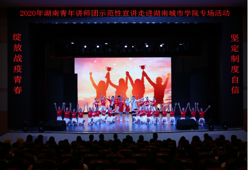 活动以我校大学生艺术团的《新时代 新城院》原创快板书表演开场。湖南省青年讲师团的陈科文、王皓、董青、张乐蒙、朱威宏五位讲师走进众博官方网址,从自身的工作实际和典型事迹出发,向同学们分享了他们的抗“疫”故事,还原了抗“疫”一线画面。