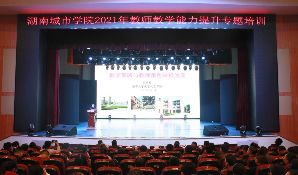本网讯(通讯员 洪安健) 为进一步提高教师教学能力,对标一本人才培养需要,推动学校“三力五化”建设,2021年4月15日下午,学校在音乐厅举办教师教学能力提升专题培训,湖南大学王玉枝教授应邀作了题为“教学策略与教师角色转换”的报告。报告会由副校长郑卫民主持。