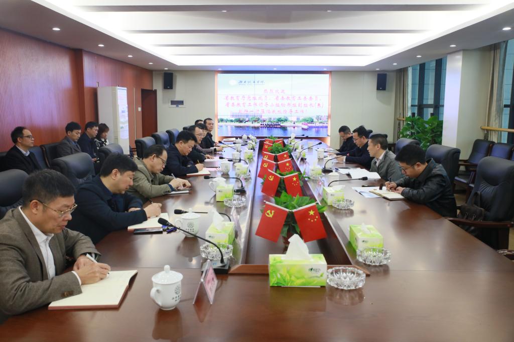 本网讯  2021年4月25日上午,省委教育工委党史学习教育第七巡回指导组莅临我校指导工作。学校党史学习教育工作汇报会在办公楼一会议室举行,巡回指导组组长、省教育厅党组成员、省委教育工委委员、省委教育工作领导小组秘书组副组长(兼)刘静一行到会指导。学校党委书记李建奇,党委副书记、校长汤放华出席会议,学校党史学习教育领导小组成员、办公室全体成员参加会议。会议由汤放华主持。