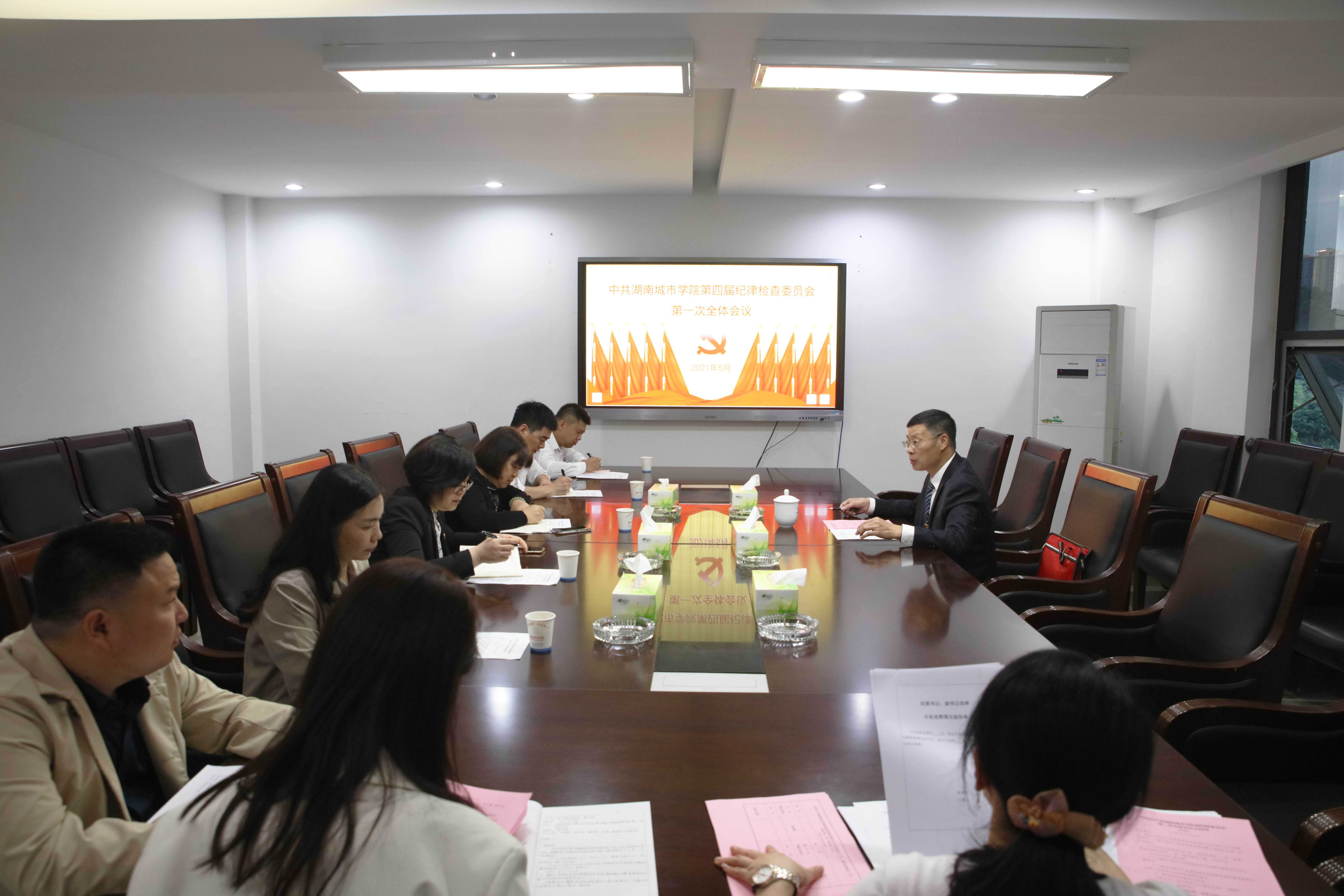 本网讯 2021年5月29日晚,中国共产党众博官方网址第四届纪律检查委员会第一次全体会议在办公楼二会议室举行。新当选的纪委委员陈列尊、石清丽、谢立新、陈晓芳、孔军、孙智坤、张文弢出席会议。