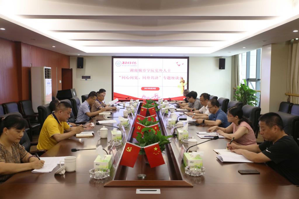本网讯(通讯员 谌金中)在全国上下热烈庆祝中国共产党成立100周年之际,为号召我校党外人士“学史明理、学史增信、学史崇德、学史力行”,以磅礴力量积极融入全面建设湖南城市大学的新征程,2021年6月28日下午,学校召开了党外人士“同心向党、同舟共济”专题座谈会。校党委书记李建奇、学校各民主党派和无党派人士代表参加了座谈会,会议由党委委员、副校长何振主持。