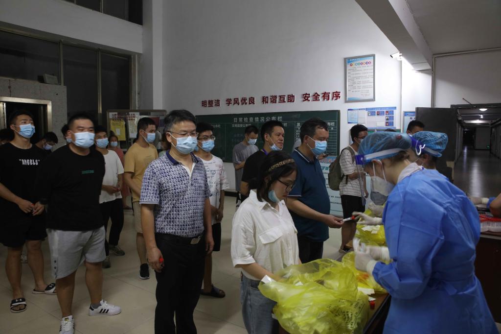 晚上7:00,汤放华一行来到学生宿舍,看望慰问了为我校师生进行核酸检测的医务人员。经我校与益阳市高新区疫情防控办协调,争取到为我校暑期留校师生和家住慧泽园小区教职工进行免费核酸检测。(文彦波)