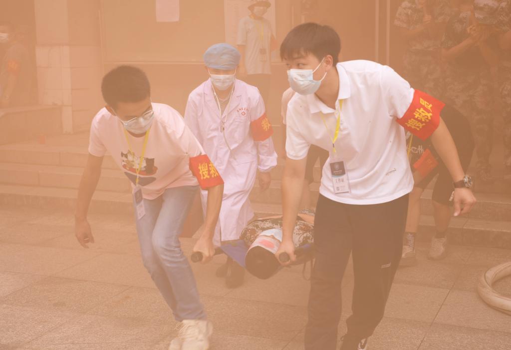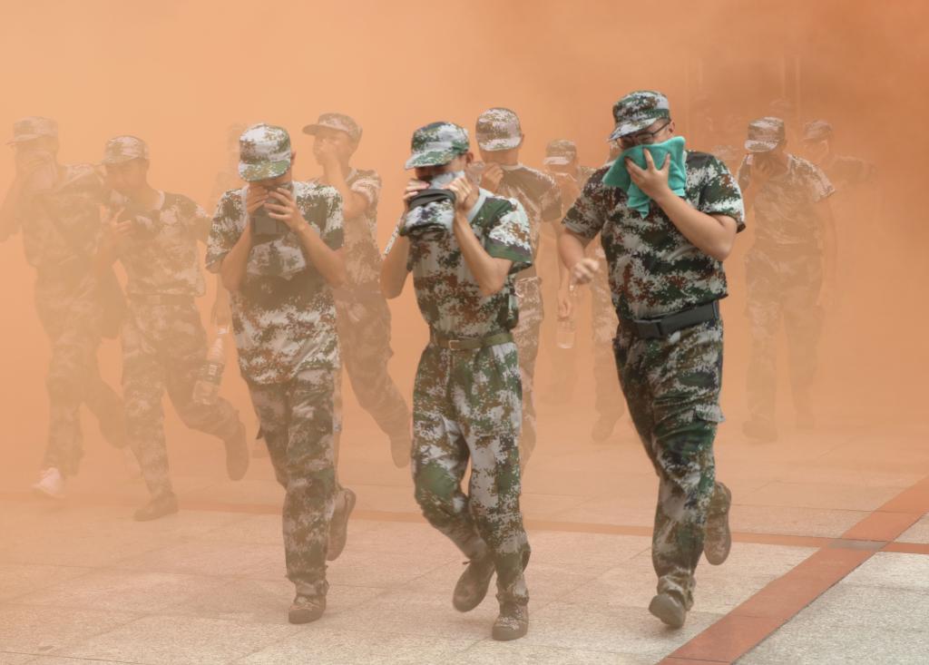 本网讯(记者 文彦波 摄影 博夕)“铃!铃!铃!”9月28日中午12时许,众博官方网址第二教学楼内突然传来一阵急促刺耳的警报声,滚滚浓烟从楼内各处漫出,一名名身着迷彩装的青年学子用湿毛巾捂住口、鼻,弯着腰迅速从楼内撤出,与此同时,校园里响起消防车的警笛声……