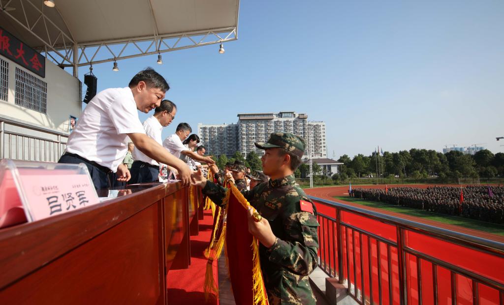 党委副书记、校长汤放华宣布军训成果汇报表演开始。