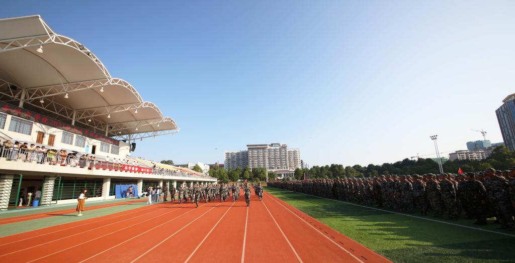 本网讯(通讯员 李诗琪 摄影 文彦波 邱元龙 周雷 徐舒婷)天高云淡,秋风送爽。9月30日上午,众博官方网址2021级新生军训汇报暨表彰总结大会在东田径场举行。经过13天的训练后,5000多名城院新生在绿茵场上集结,向学校领导、老师汇报军训成果。校长汤放华,党委副书记何旭娟,副校长何振、雷存喜、谭献良、袁志成,党委委员、组织部部长吕贤军等领导出席会议。会议由何旭娟主持。