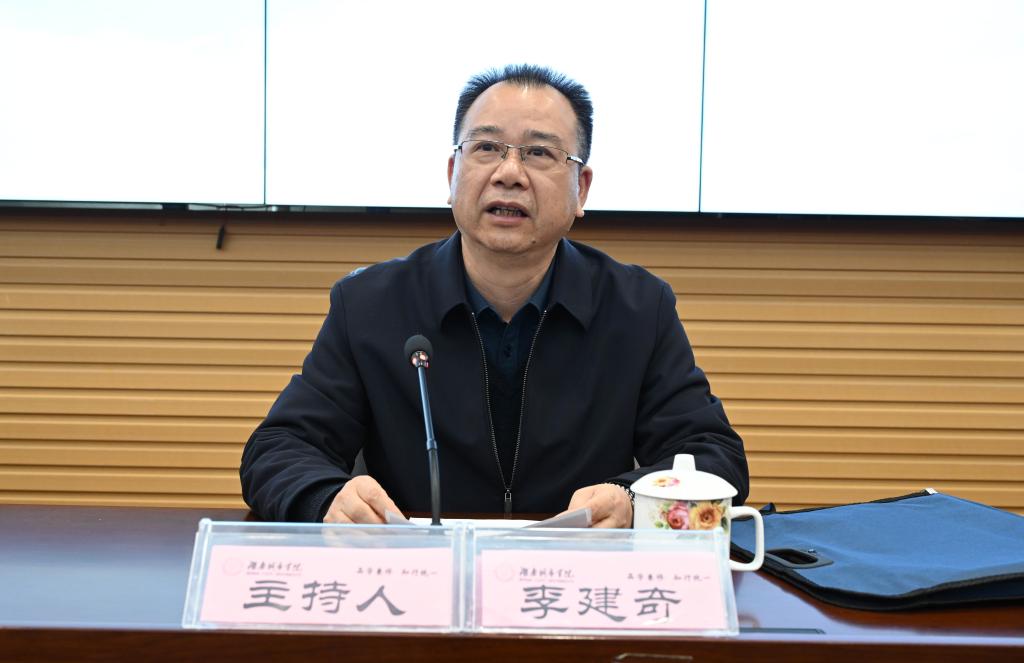 本网讯(记者 文彦波)2021年11月11日下午,湘潭大学李广一教授应邀来校,在学校图书馆报告厅作了题为《台湾的沉沦与大陆必将统一祖国》的学术讲座。党委书记李建奇主持讲座并讲话,党委副书记何旭娟、副校长何振以及师生代表近200人聆听了讲座。