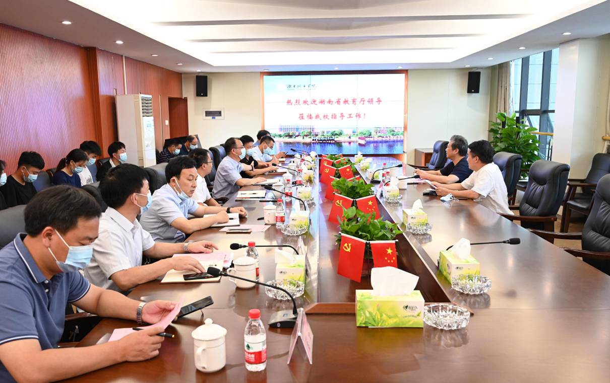 本网讯(记者 文彦波)9月7日上午,省教育厅二级巡视员曾四清来校调研安全稳定、宿舍搬迁等工作。党委书记李建奇、校长汤放华、副校长袁志成等出席调研座谈会。省教育厅督导处负责人参加调研。