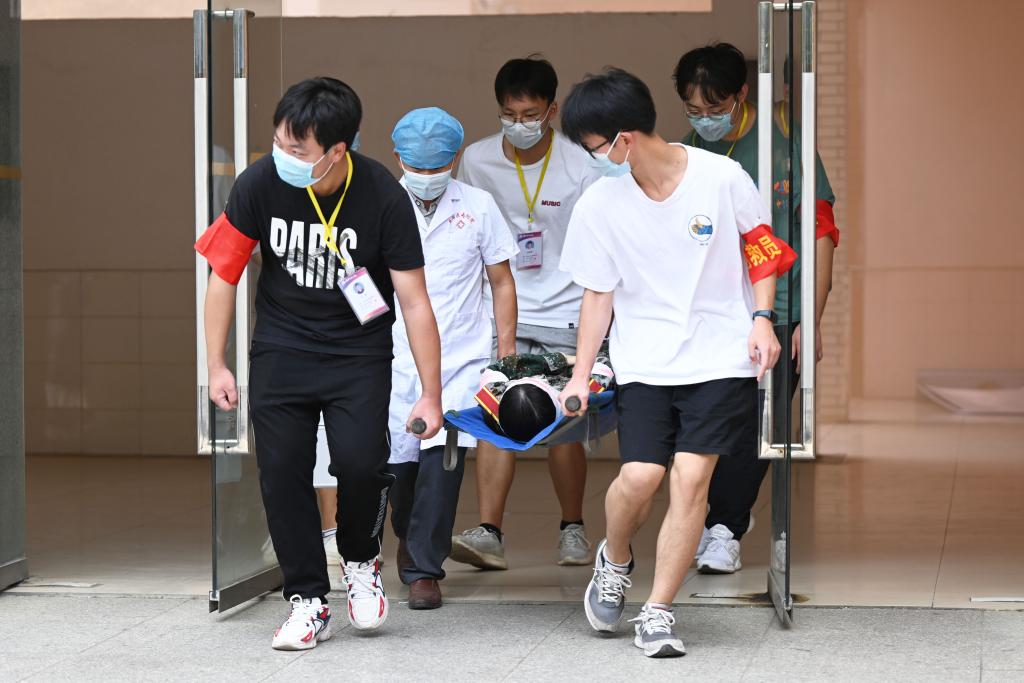 9月20日,众博官方网址参加消防演练的同学们用湿毛巾捂住口鼻,有序撤离。