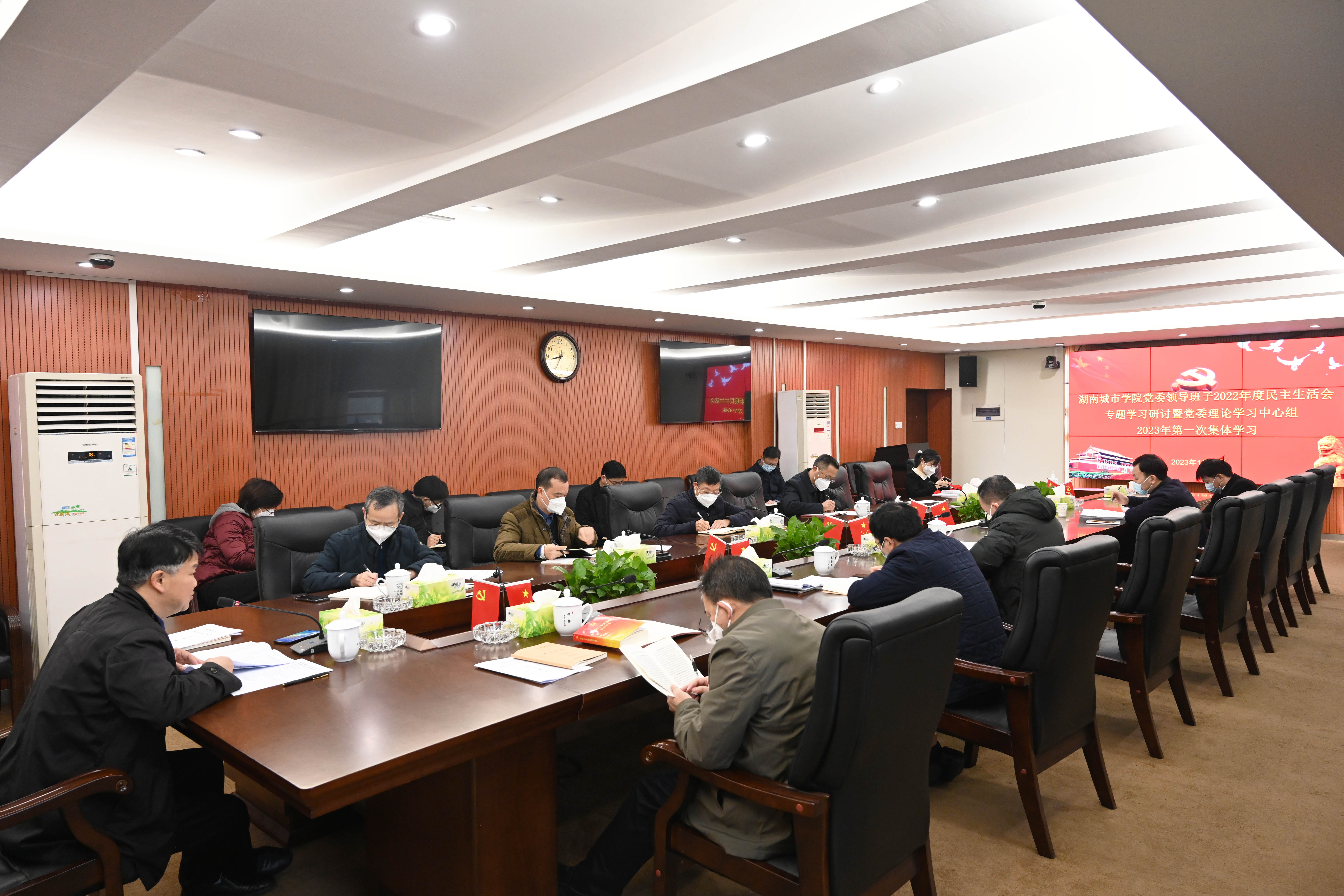 本网讯(通讯员 周文娟)1月11日,学校在办公楼一会议室举行党委理论学习中心组2023年第一次集体学习,围绕2022年度党委领导班子民主生活会开展会前专题学习研讨,传达学习习近平总书记重要讲话精神、党的二十大精神以及省委相关文件精神。党委书记汤放华主持学习。