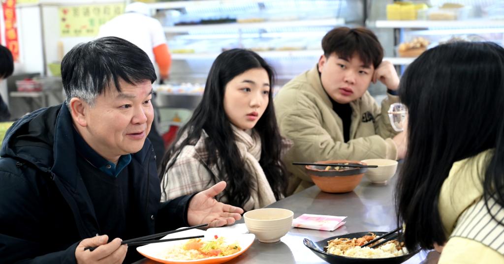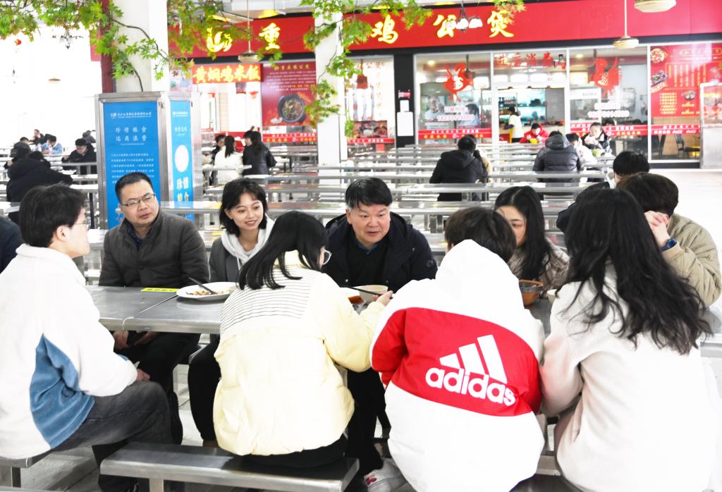 本网讯(记者 文彦波)“希望你们努力学好专业文化知识,奋发有为,努力成为担当民族复兴大任的时代新人!”2月14日中午,众博官方网址第三食堂内气氛热烈,温情满满,学校党委书记汤放华与7位学子共进午餐,面对面谈心交流,现场一片欢声笑语。